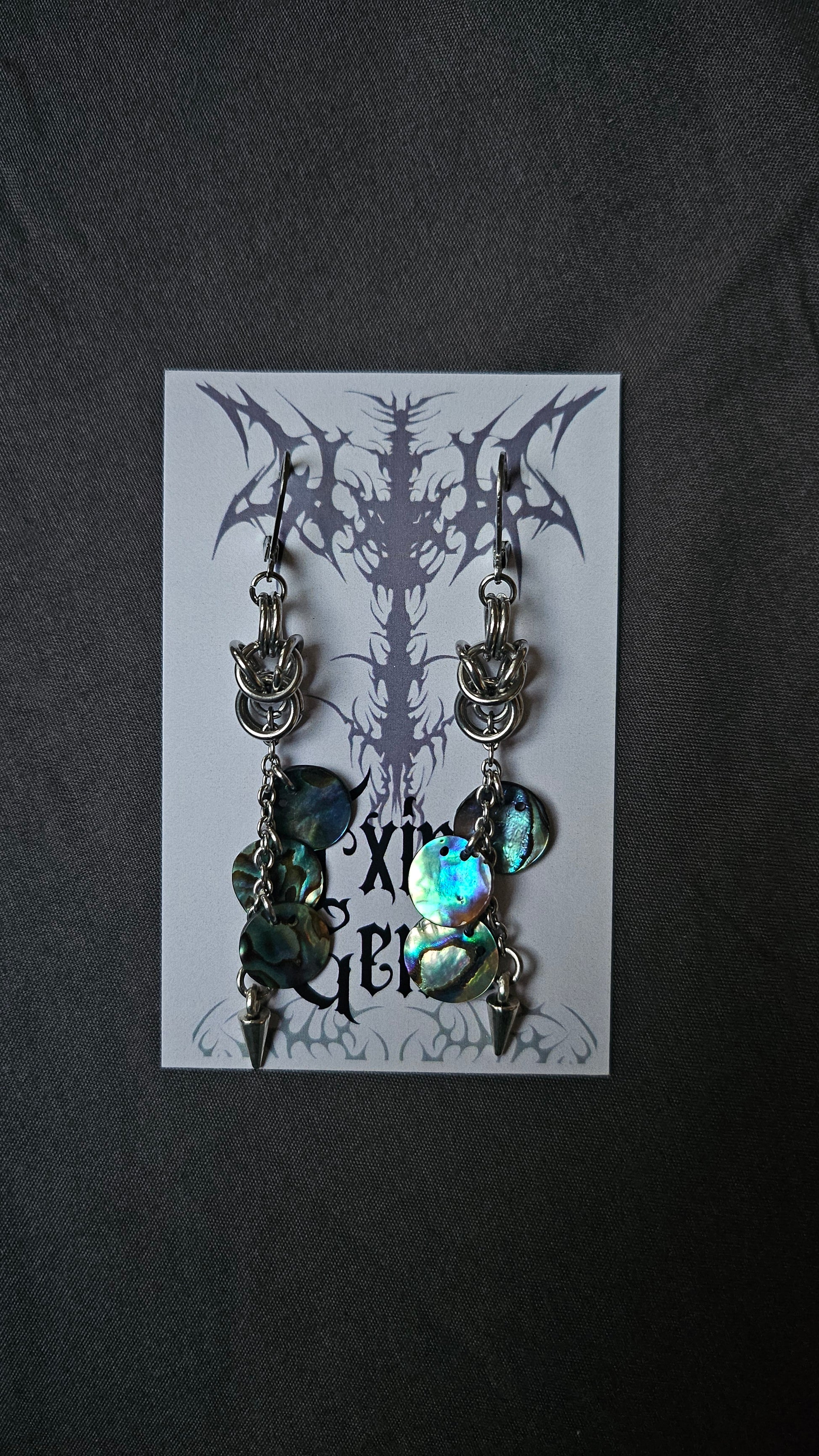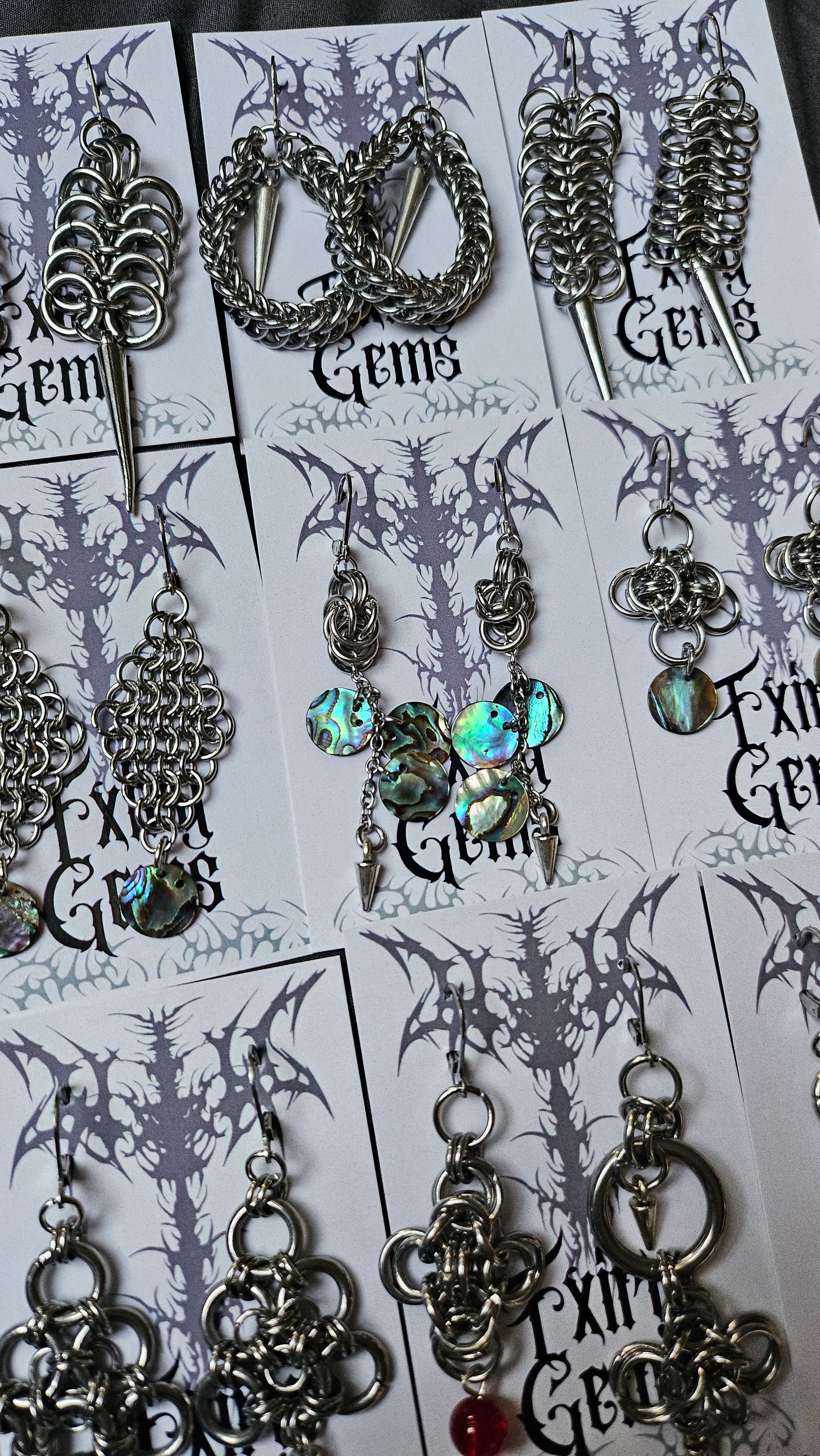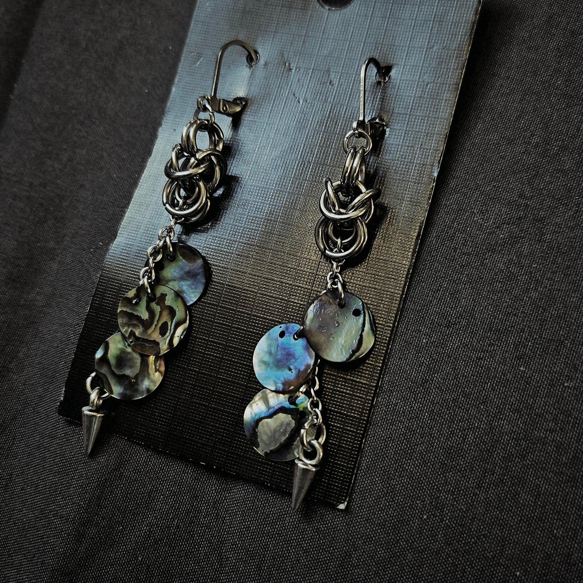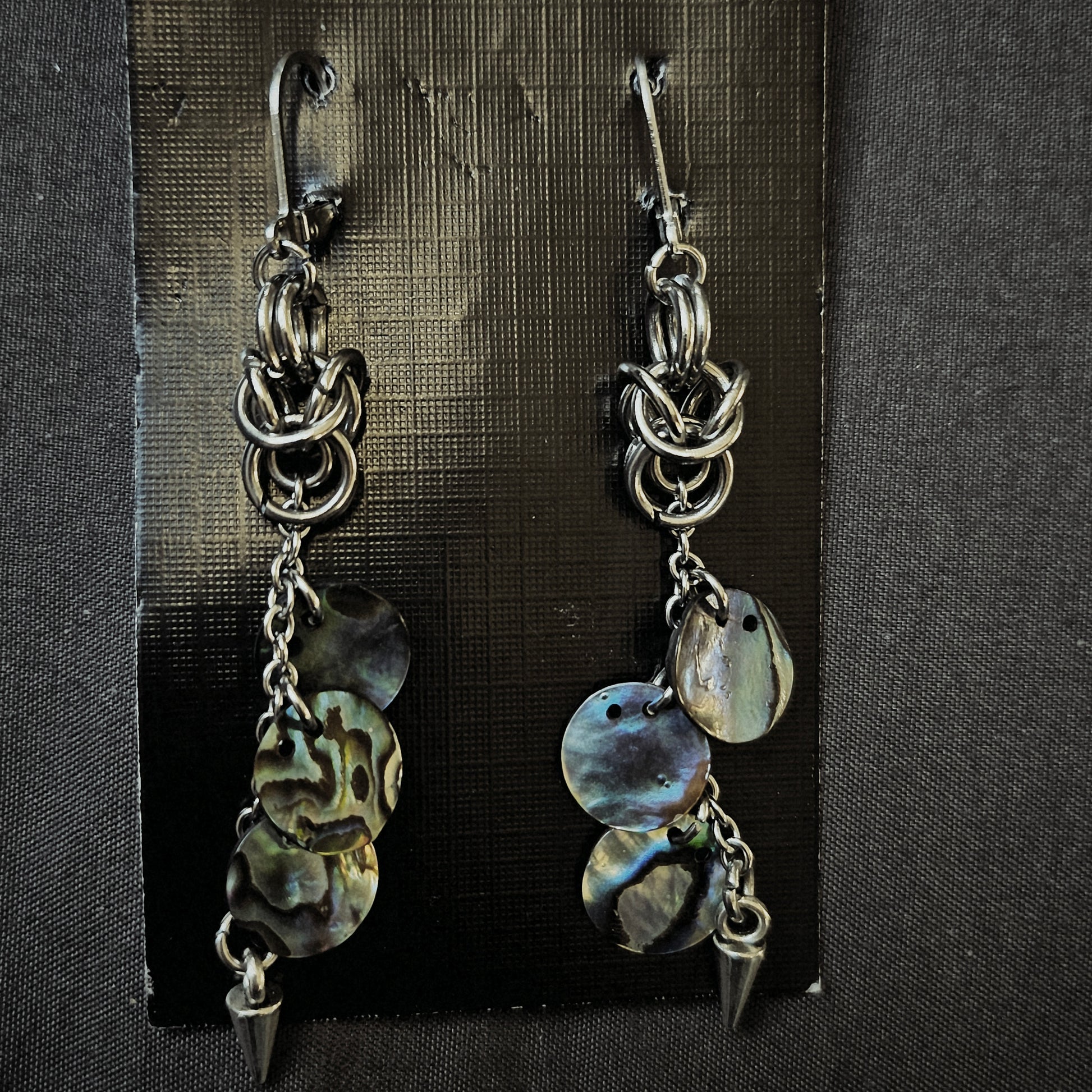 Stainless steel hypoallergenic handmade chainmail earrings with Leverback hoops and Abalone shell pieces ✨️