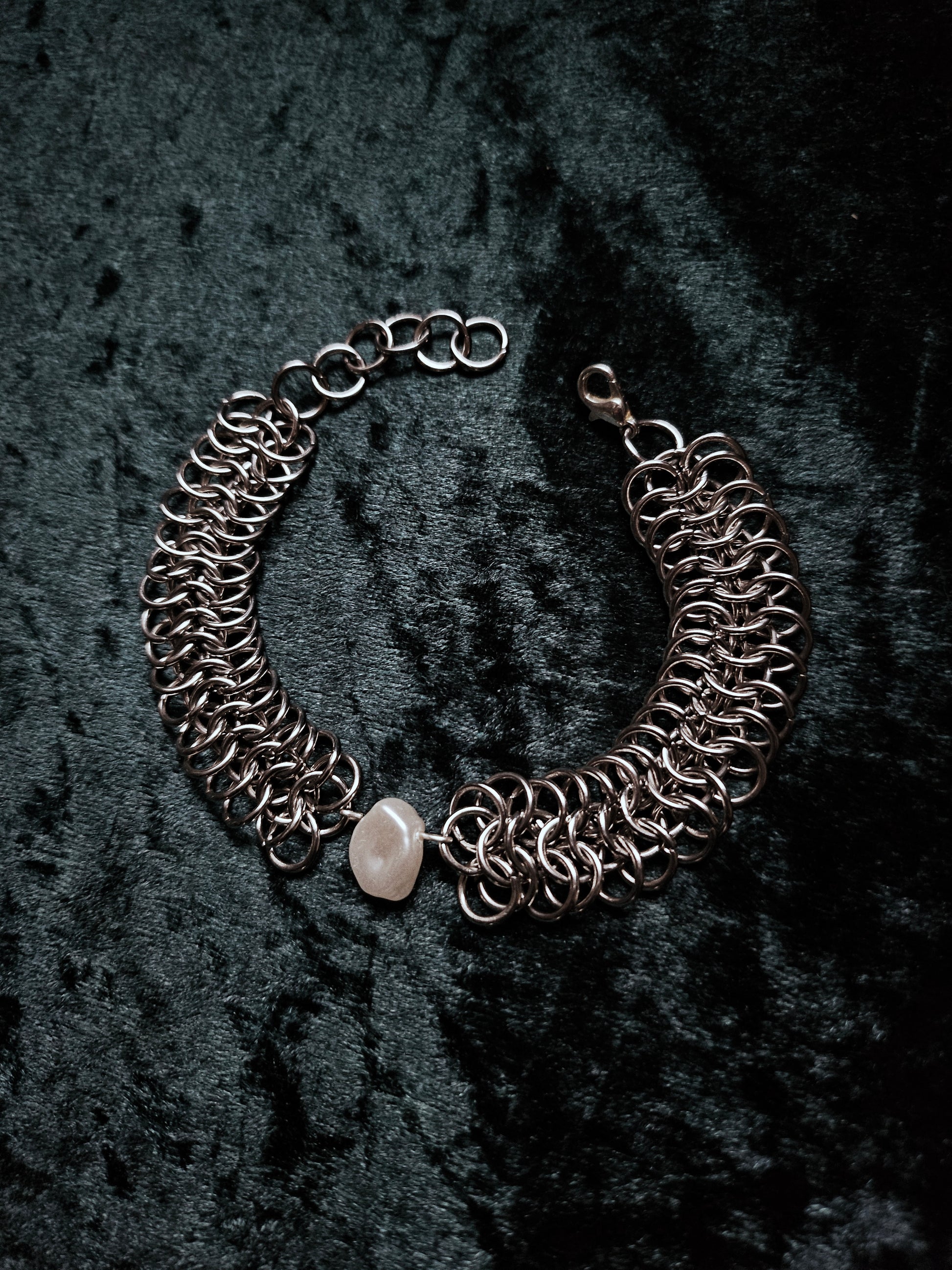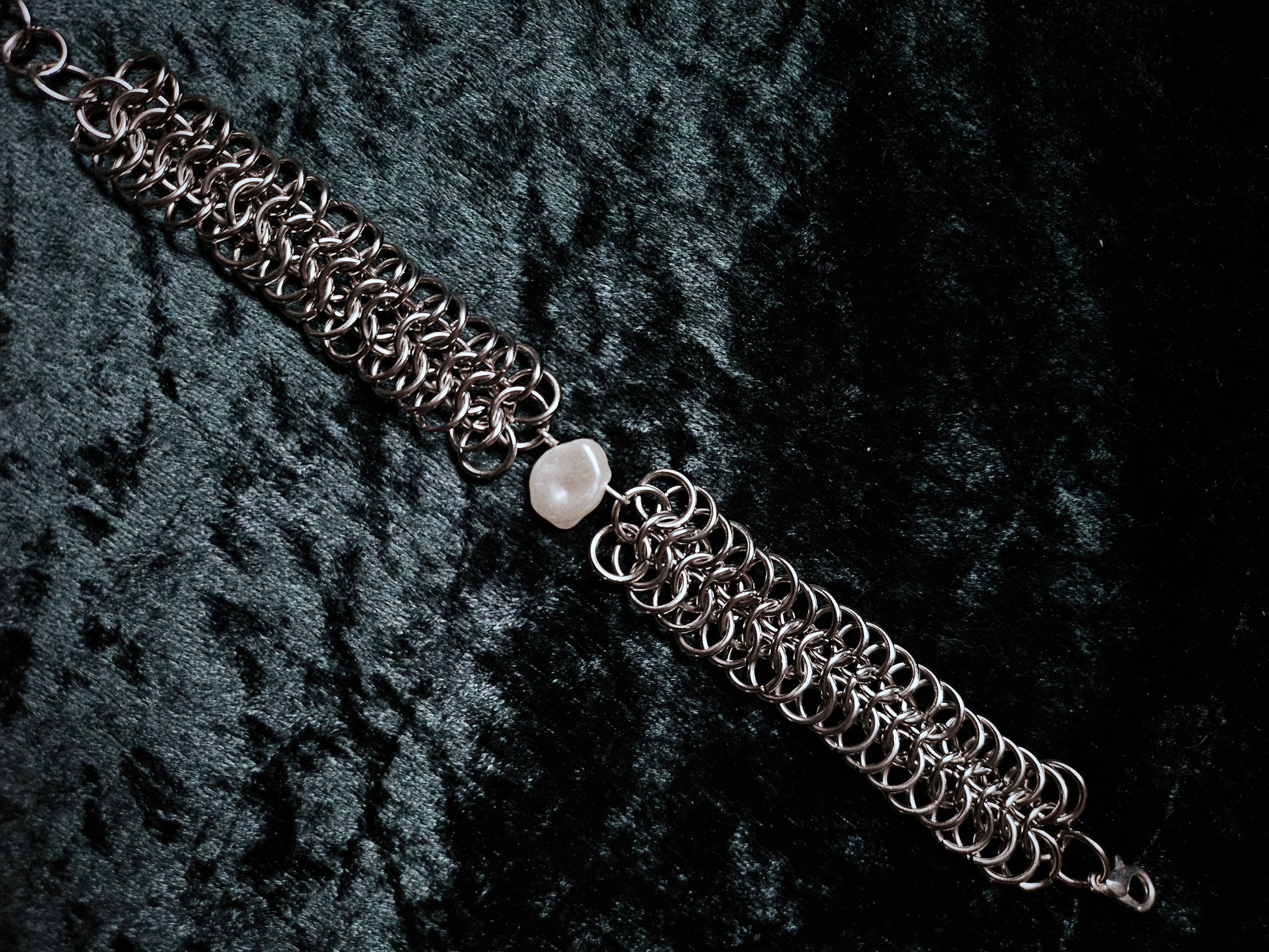 Chainmail bracelet with faux pearl bead, adjustable